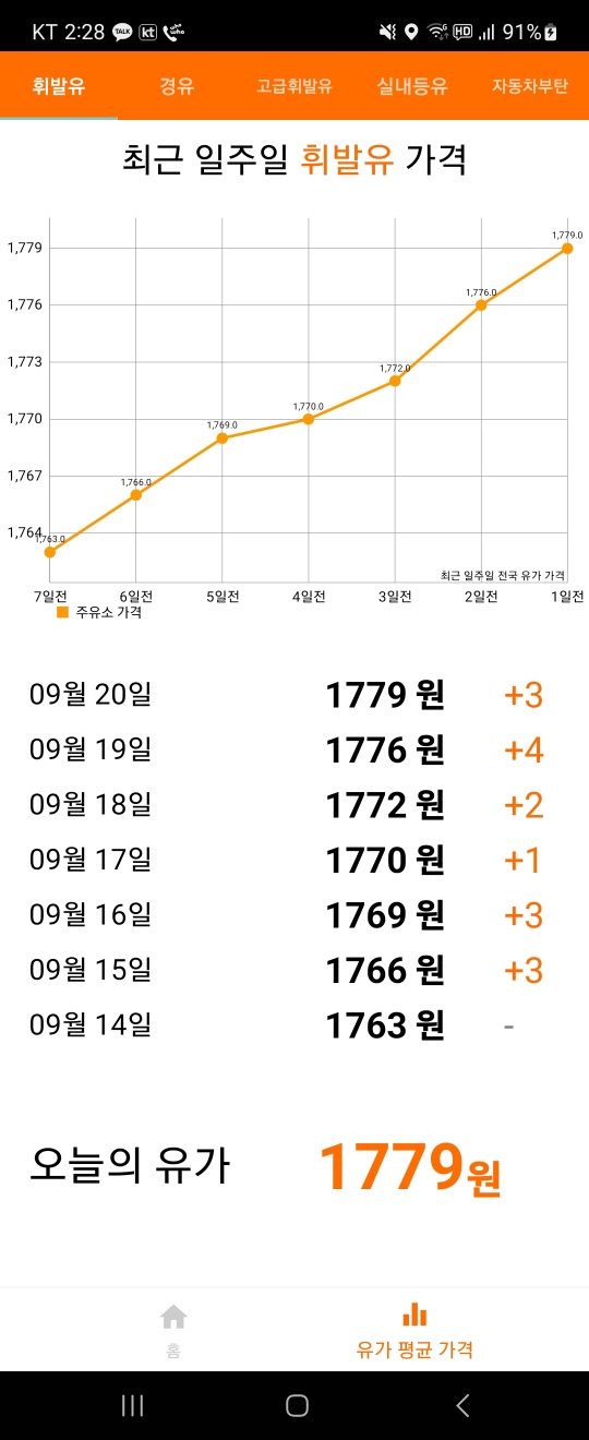 각 기름의 일주일간 주유 정보를 text로만 보여주는 것이 차트를 이용하여